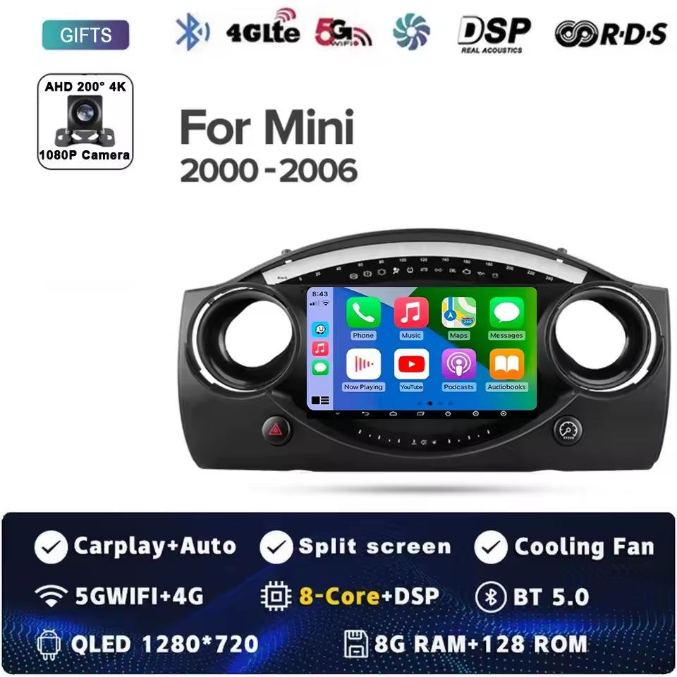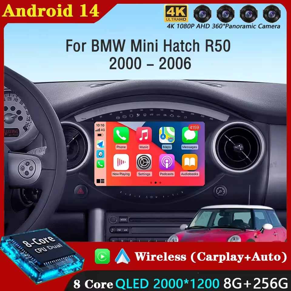 Android 14 Carplay Auto Per BMW Mini Hatch R50 2000 - 2006 Autoradio Lettore Video Multimediale Navigazione GPS No 2Din 2 Din DVD