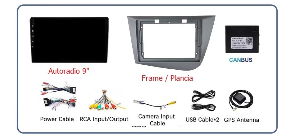 Autoradio 4/64 GB + Adattatore 9" + Canbus Box - Kit Per Seat Leon 2005-2012