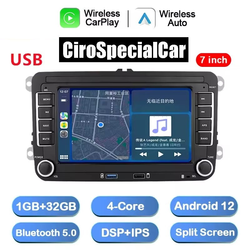 Autoradio 7" per VW Volkswagen Golf Polo Skoda Rapid Octavia Radio Tiguan Passat b7 Jetta 2 Din Auto Carplay Android 13 WiFi