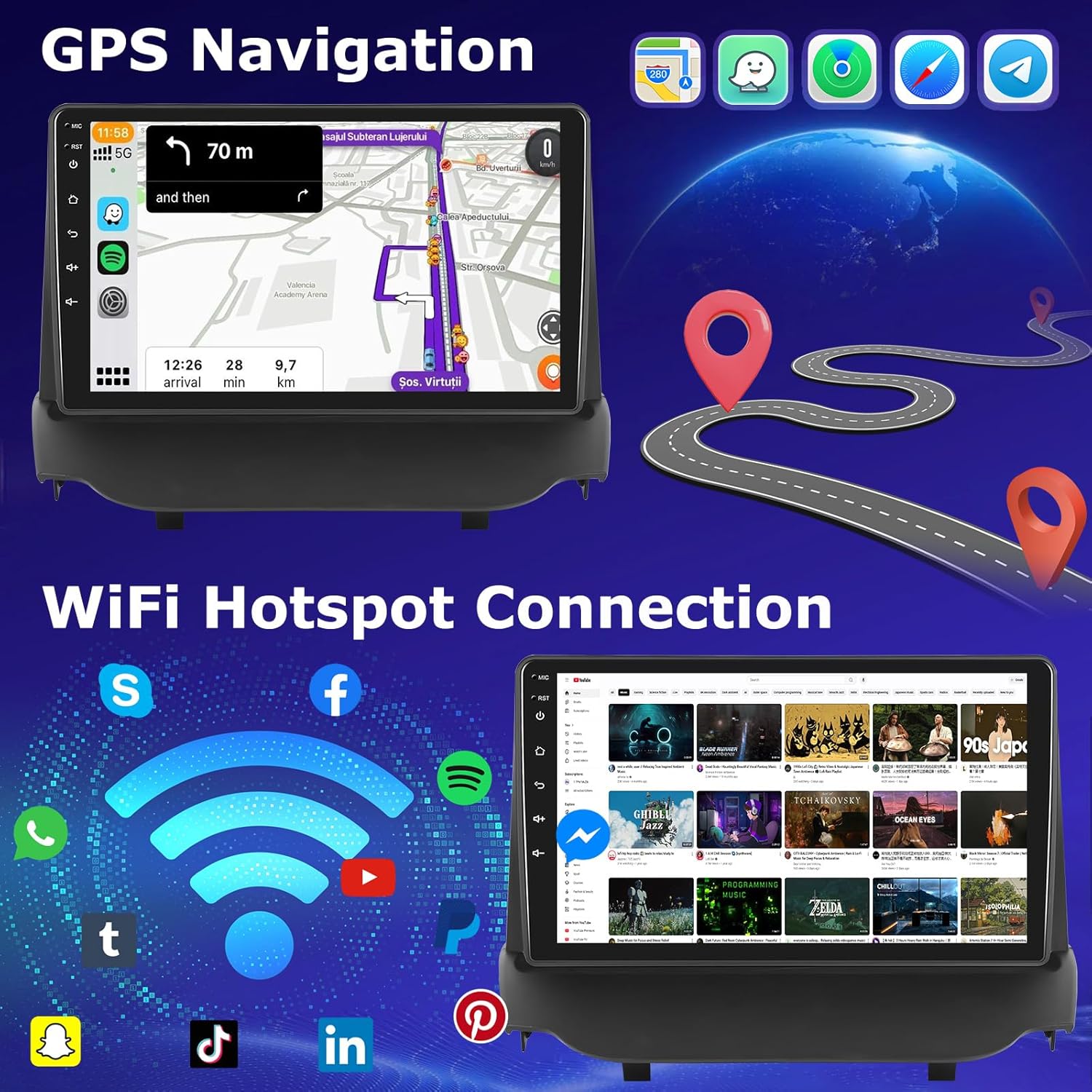 Ford Ecosport 2013-2017, Radio Touchscreen da 9 Pollici con Carplay Wireless e Android Auto/WiFi/GPS/Bluetooth/EQ/Radio FM RDS+Telecamera