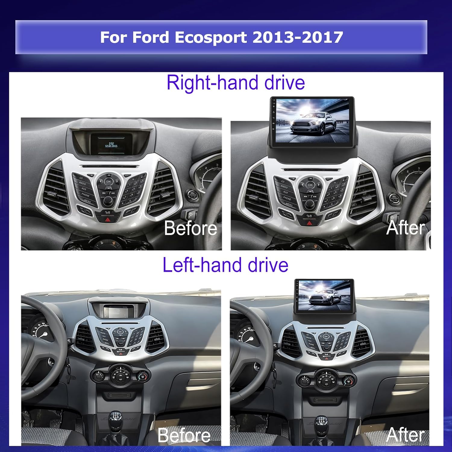 Autoradio Android per Ford Ecosport 2013-2017, Radio Touchscreen da 9 Pollici con Carplay Wireless e Android Auto/WiFi/GPS/Bluetooth/EQ/Radio FM RDS+Telecamera