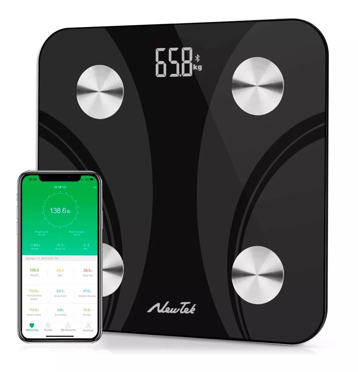 Bilancia Pesapersone Digitale Fino a 180 Kg Bluetooth di Colore Nero