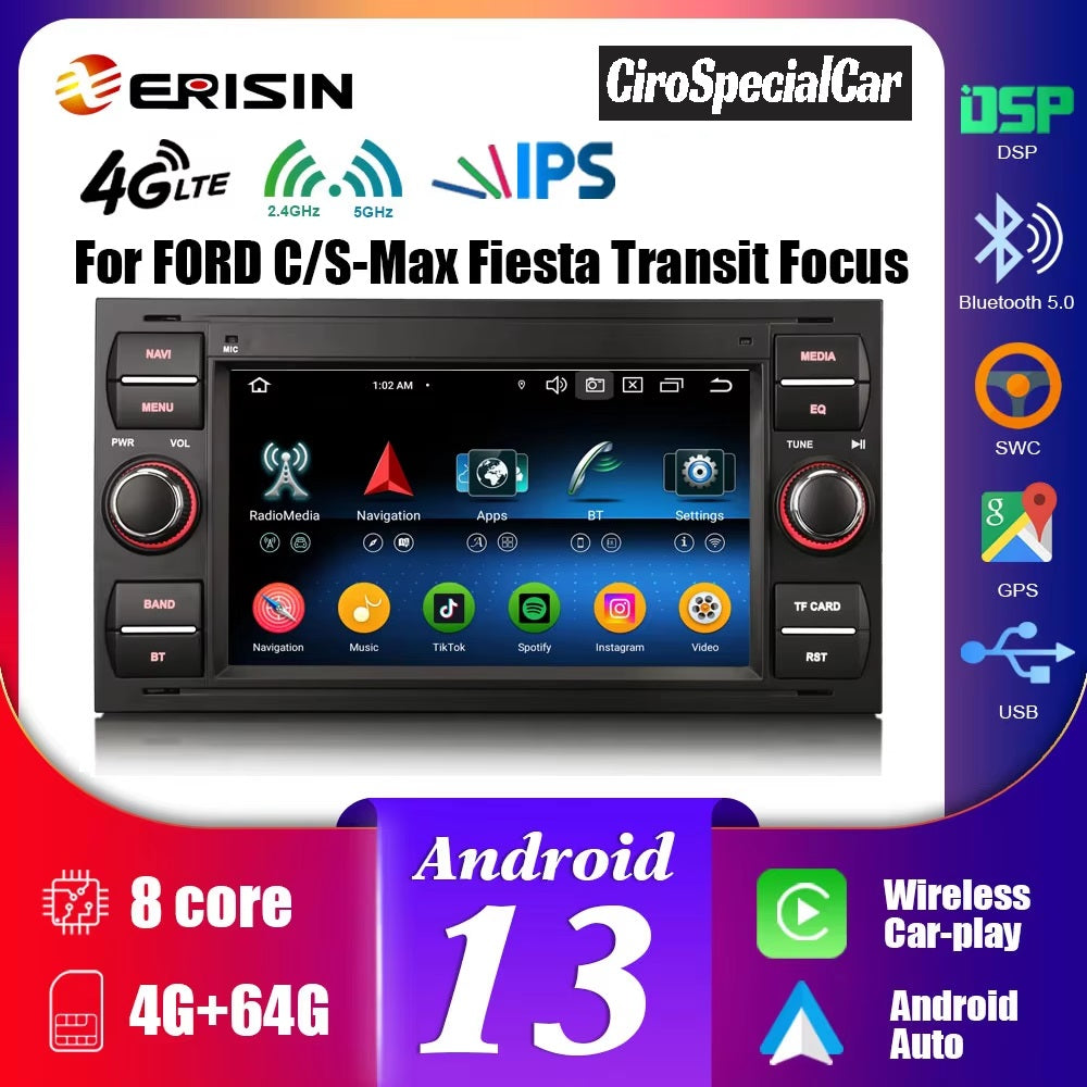 Erisin ES5760PB Android 13 GPS stereo per auto per FORD Focus II Kuga C-Max Transit Fiesta Multimedia 4G Wireless CarPlay Auto Radio