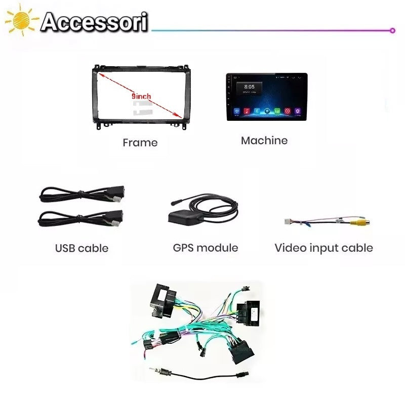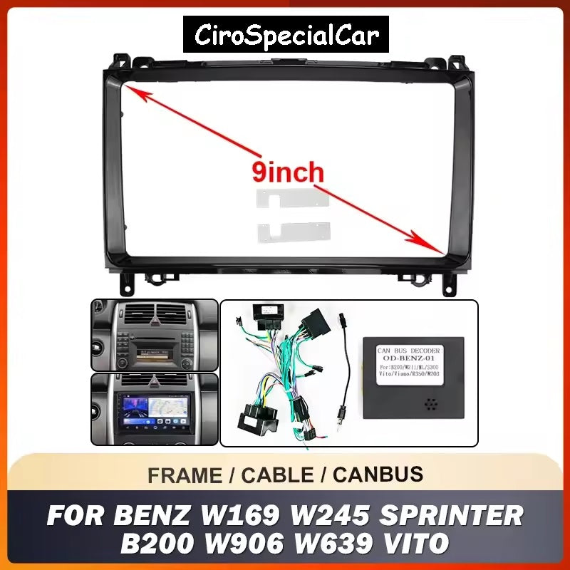 Kit Autoradio 9" Per Mercedes Benz W169 W245 B200 W906 Sprinter W639 Vito Auto Radio Telaio Fascia Pannello Adattatore Decoder Canbus Cavo Kit